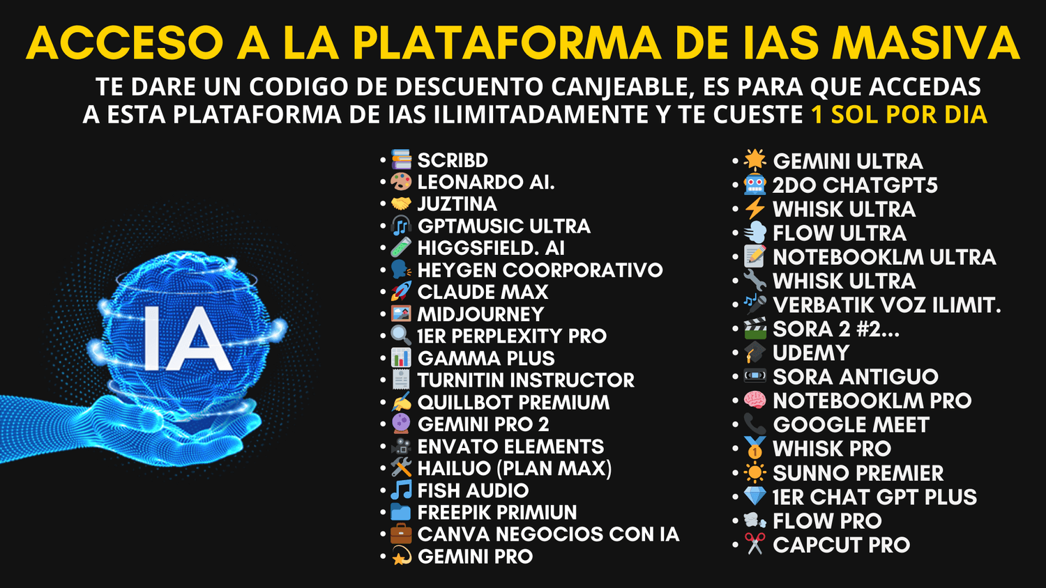 APRENDERÁS DESDE 0 A EXPERTO A TRABAJAR CON LAS INTELIGENCIAS ARTIFICIALES, DESDE COMO CREAR PAGINAS WEB, LANDING PAGE, CREAR VIDEOS Y AUDIOS CON IA, CONSEGUIR PROMPTS, CREAR MUSICAS, ETC.