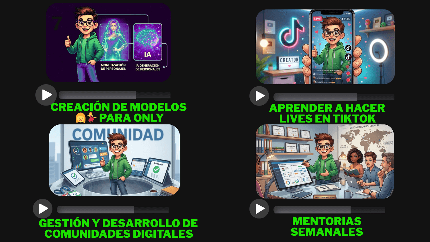 APRENDERÁS DESDE 0 A EXPERTO A CREAR VIDEOS CON IA, CREACIÓN DE PERSONAJES, VIDEOS PARA TIKTOK, NICHOS GANADORES, TRANSICIONES, ETC.
